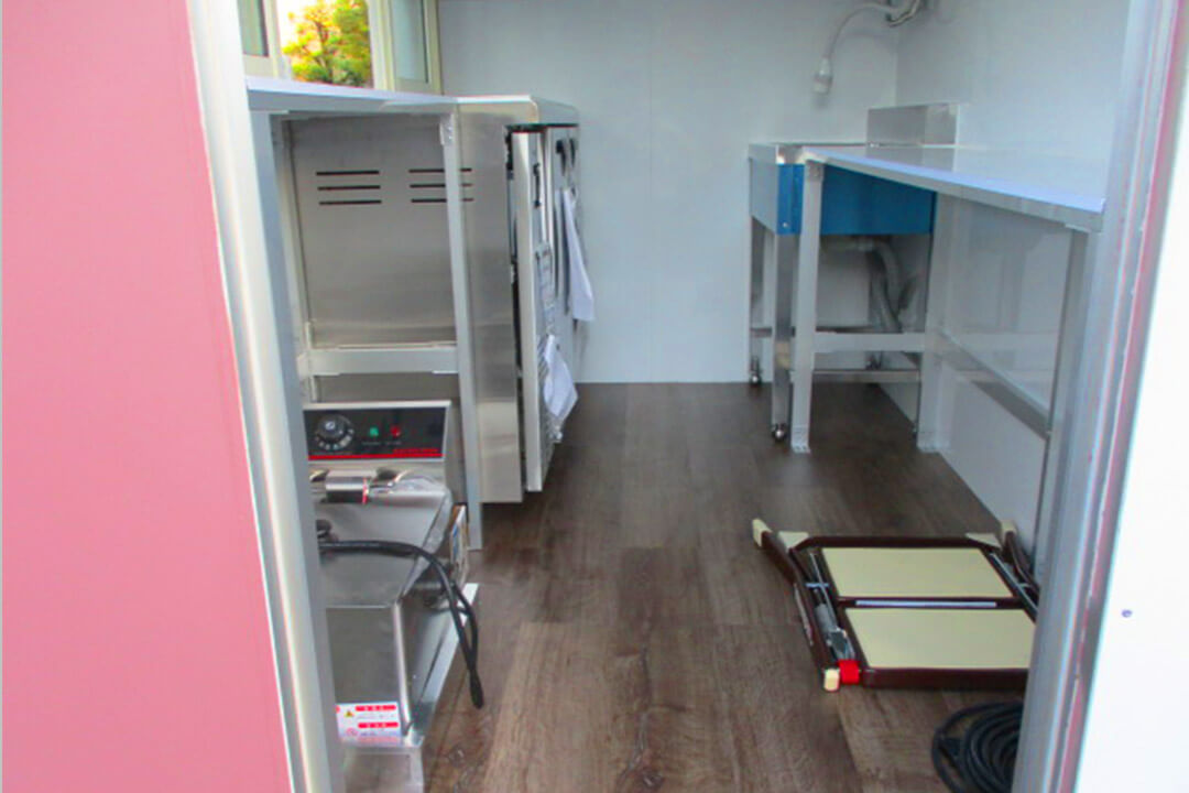 コンパクトな車体で運転しやすく、狭い場所でも営業が可能です。販売オペレーションがしやすく、大量の食事をしっかり提供することができます!